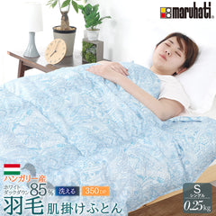 ハンガリー産ホワイトダックダウン85% 羽毛肌掛け布団 シングル ブルー