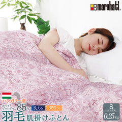 ハンガリー産ホワイトダックダウン85% 羽毛肌掛け布団 セミダブル ピンク