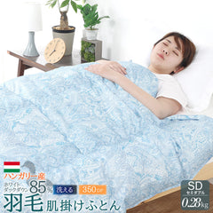 ハンガリー産ホワイトダックダウン85% 羽毛肌掛け布団 セミダブル ブルー