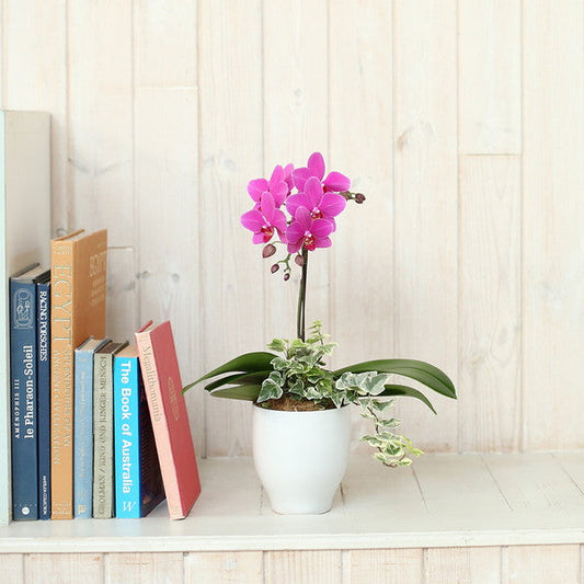【ギフトカード】ミディ胡蝶蘭観葉寄せ(4.5号鉢1本立ち 濃ピンク)