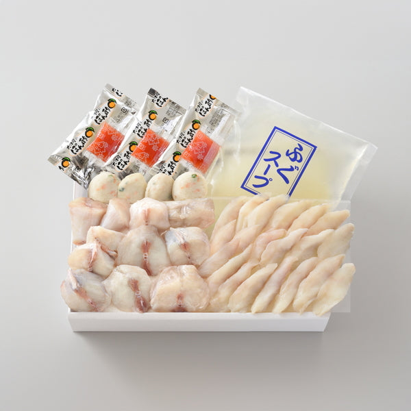 ■商品内容:真ふく切り身300g×1、真ふくスライス100g×1、ふく入りつみれ×4個、ふぐスープ500g×1、ぽん酢30ml×3、もみじおろし5g×3