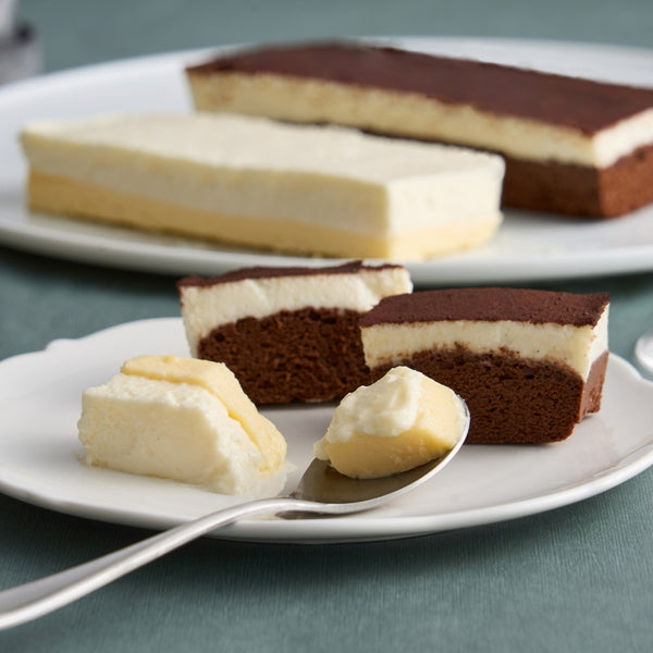 ■北海道発の2つの表情を持つチーズケーキの競演。濃厚でなめらかな口どけの「クリュフロマージュ」と、カカオの深みがとろける「クリュショコラフロマージュ」。異なる個性が織りなすハーモニーが、あなたに至福の時間をお届けします。