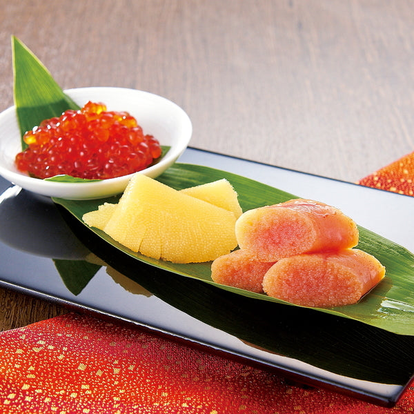 ■商品内容:無着色辛子めんたい160g、醤油いくら60g、味付数の子80g
