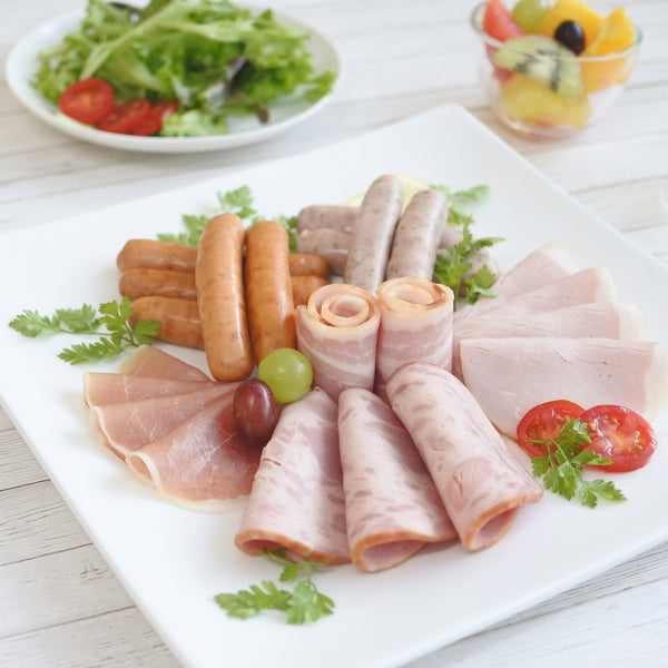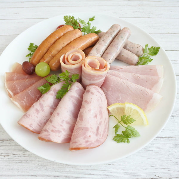 ■商品内容:熟成ロースハムスライス42g・ロース生ハム30g・熟成あらびきウインナー58g・熟成ビアシンケン60g×各2、熟成ベーコンスライス45g・熟成ハーブウインナー58g×各1
