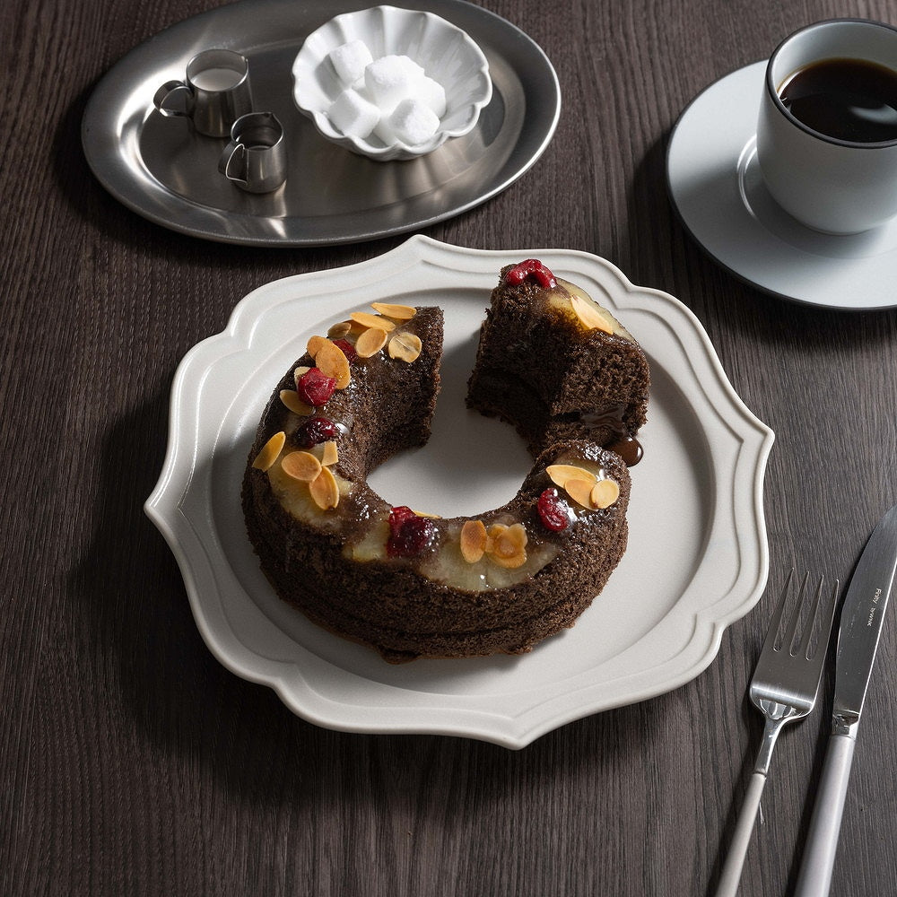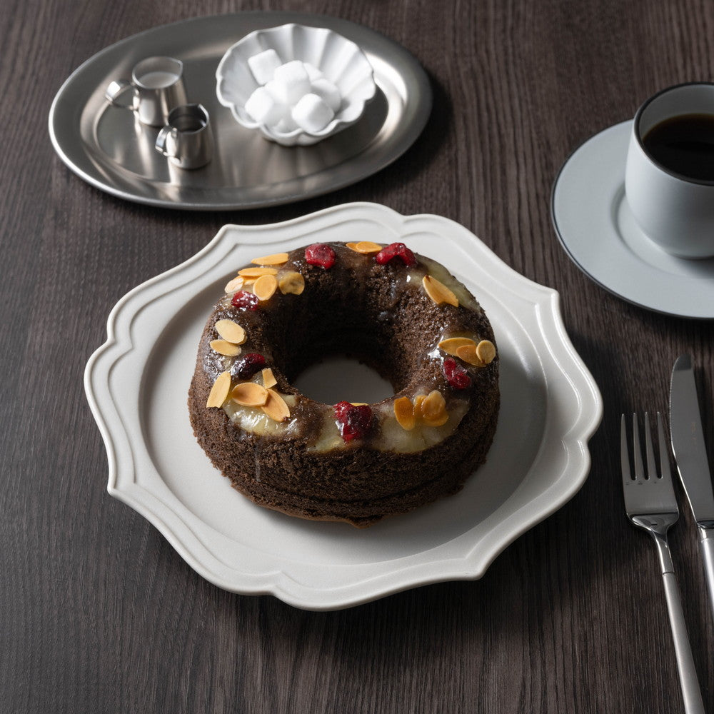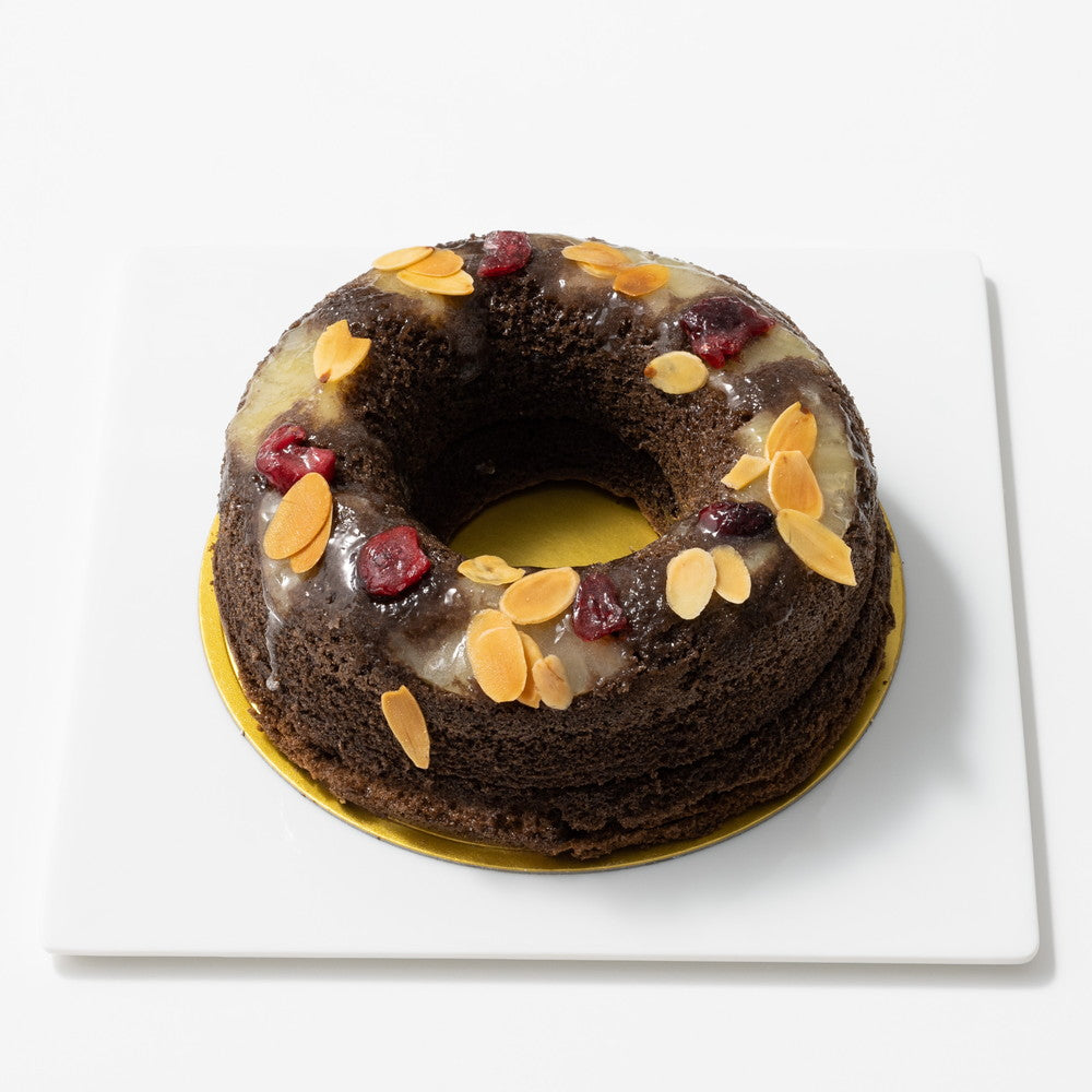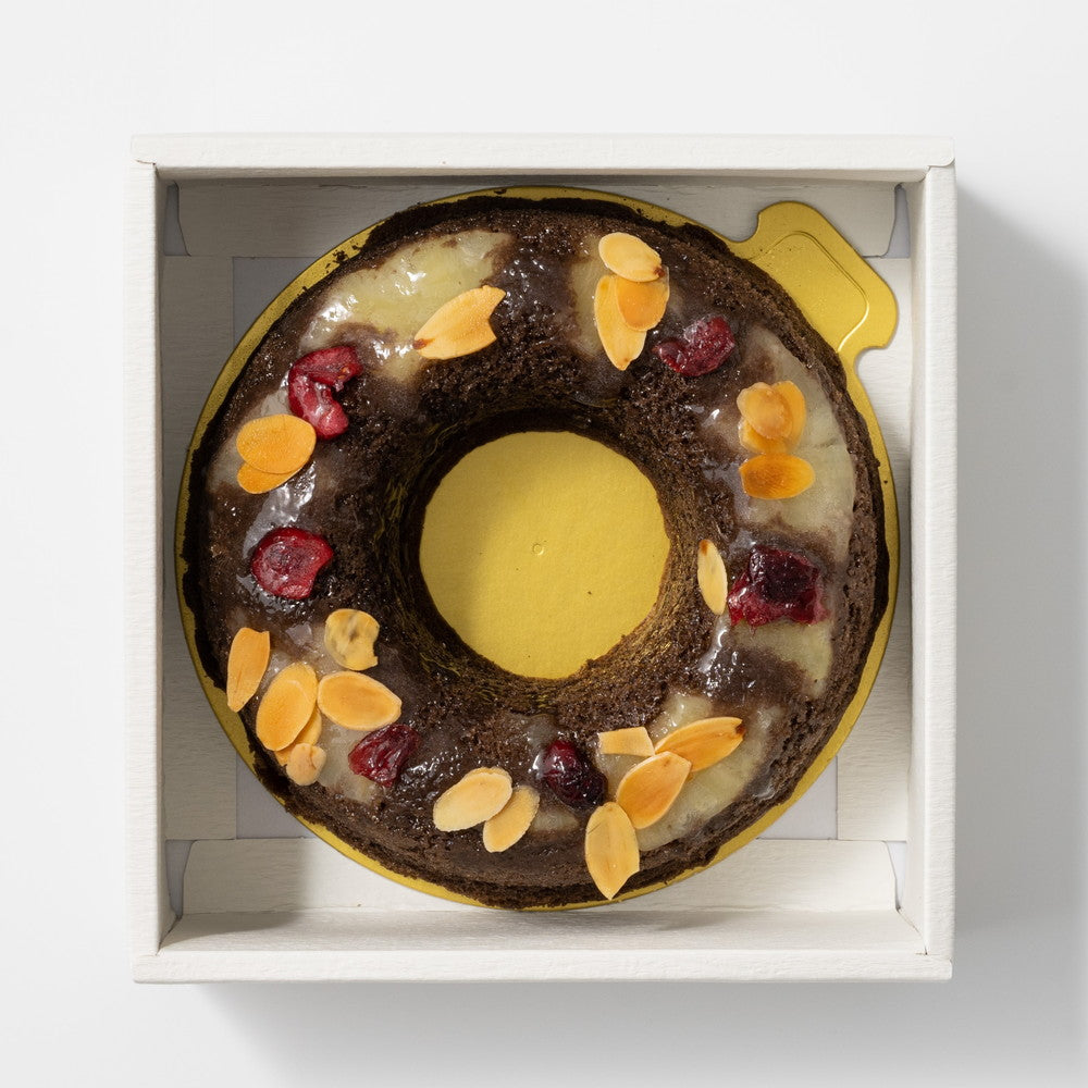 ■クランベリーやスライスアーモンドを散らしたキュートなスイーツ。チョコを練り込んだ生地と生チョコレートのリッチな風味に、フルーツの甘酸っぱさが絶妙なアクセントとなってフォークを持つ手が止まらない、まさに「小悪魔」ケーキです。