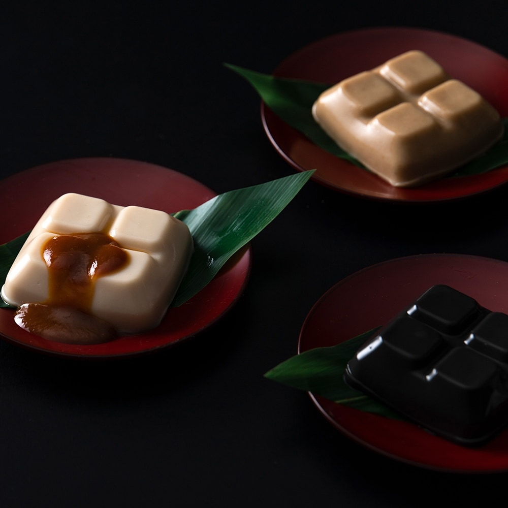 770年以上ある歴史と伝統を受け継いでいる禅の道場 曹洞宗大本山永平寺。精進料理の代表格として、永平寺に受け継がれてきた團助の胡麻豆腐は、良質のごまと葛粉を丹念に練って作られています。胡麻を2割増量(従来品比)し、より濃厚で香ばしい風味の濃厚白・黒ごまどうふに、希少価値の高い『金胡麻』を使用した香り豊かな濃厚金ごまどうふの三種の詰合せです。