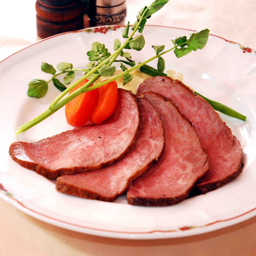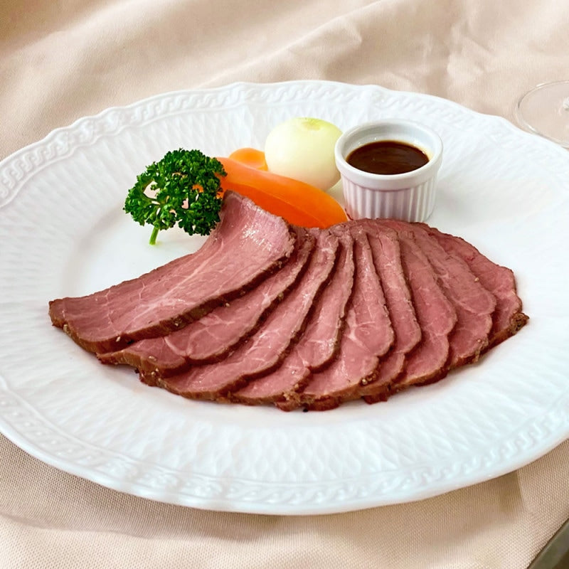 創業大正12年、神戸元町の人気洋食店「伊藤グリル」の国産牛を使用したローストビーフです。口の中に入れるとスッととろけるような繊細な肉質と、しっかりと感じる旨みを存分にどうぞ。