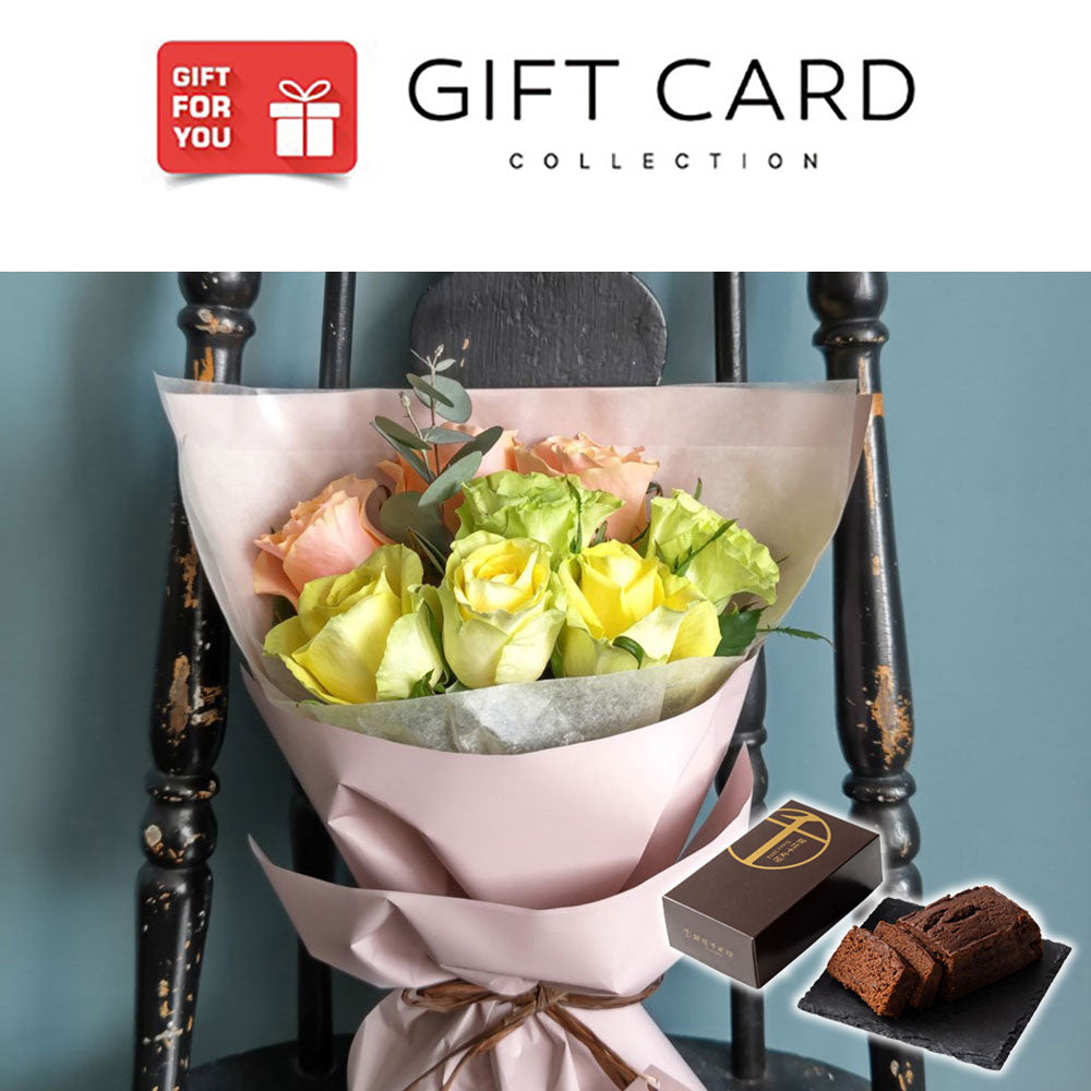 【ギフトカード】ホシファーム フリルブーケ(パッション8本)&銀座千疋屋 銀座チョコパウンドケーキ