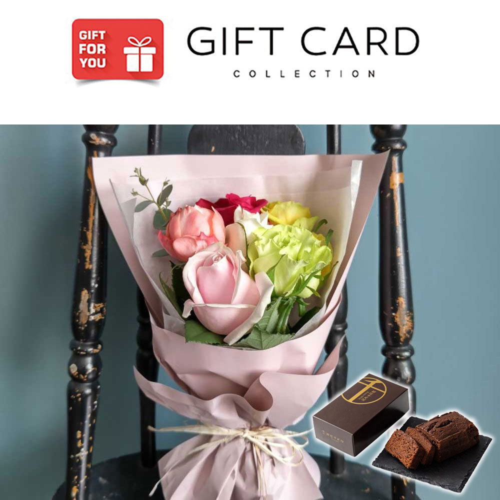 【ギフトカード】ホシファーム フリルブーケ(カラフル8本)&銀座千疋屋 銀座チョコパウンドケーキ