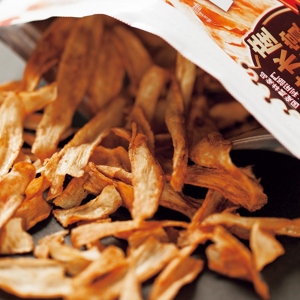 ■国産ごぼうスライスをそのまま素揚げし、こだわりのだし醤油で風味豊かに仕上げました。3種類の味がお楽しみ頂けます。