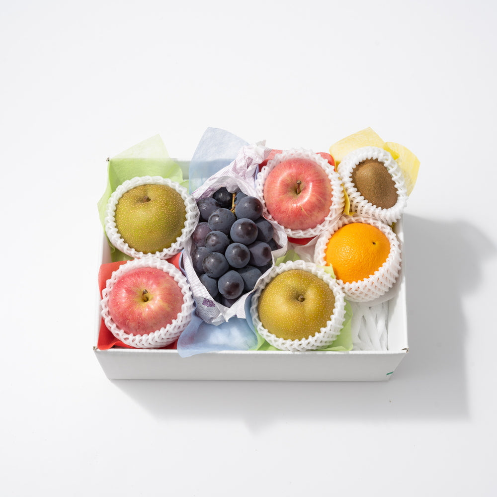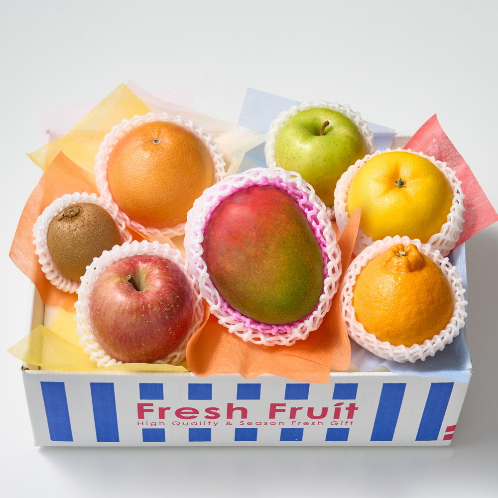 ■創業1988年のフルーツギフト専門店・フルーツワールドが厳選。旬のフルーツと定番フルーツを詰合せてお届けします。何が届くか、その楽しみも詰合せて。
