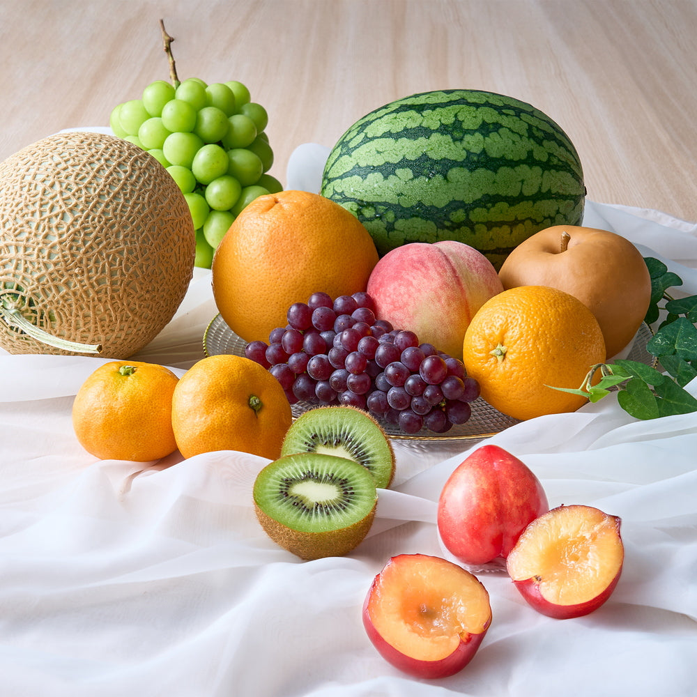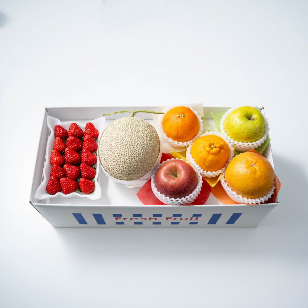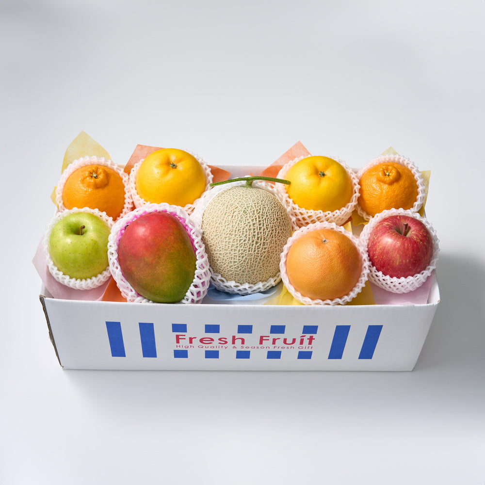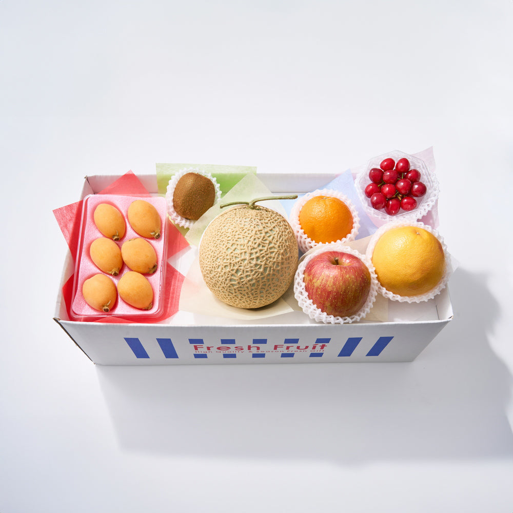 ■創業1988年のフルーツギフト専門店・フルーツワールドが厳選。旬のフルーツと定番フルーツを詰合せてお届けします。何が届くか、その楽しみも詰合せて。