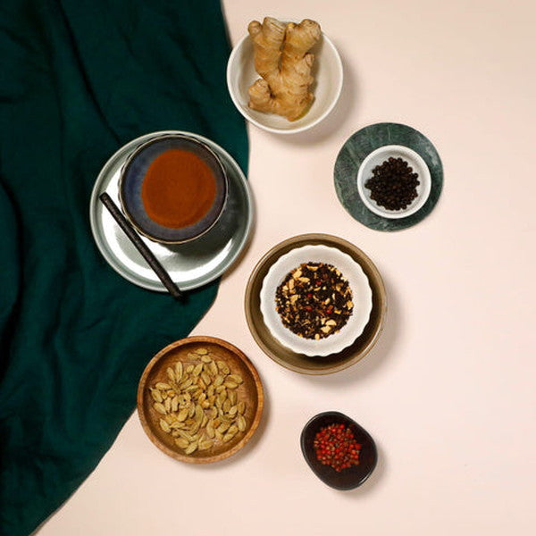 持続可能な農法で知られるインドニルギリ地方の「ティアショラ茶園」の有機茶葉に、ジンジャーやカルダモン、シナモン、ペッパーなどのスパイスを贅沢にブレンド。渋みが少なくクリーンな飲み口ながら、スパイスの力強い風味や自然な甘さが複雑に絡み合い、めくるめくアロマが重層的に広がります。
