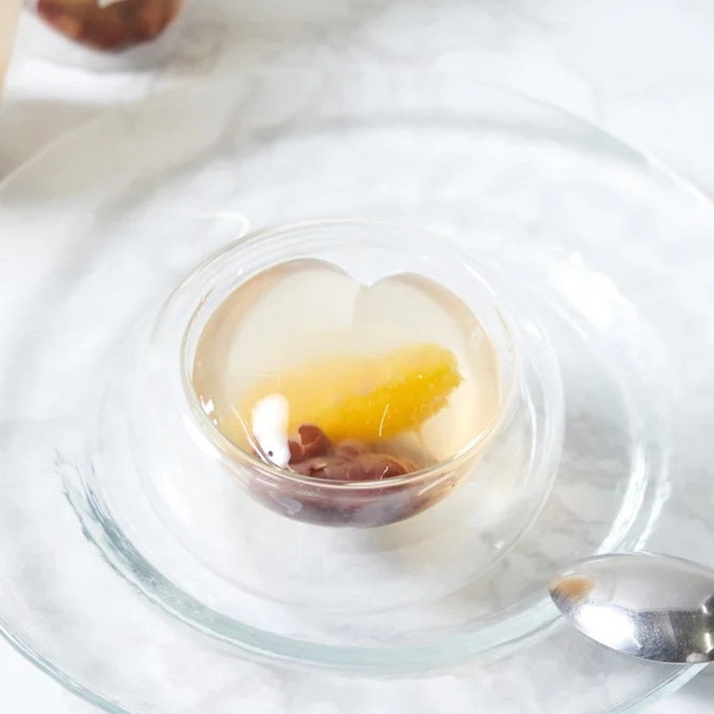 ■餡の甘みと酸味の絶妙な組み合わせと共に、食感を楽しめるフルーツあんみつゼリー。