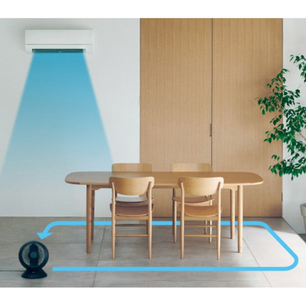 エアコンを背にして送風すれば、足元の冷気が循環して、さらに涼しく。