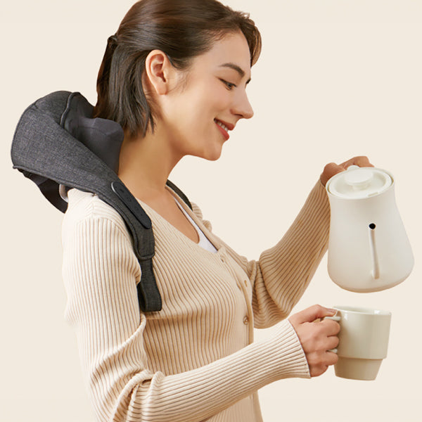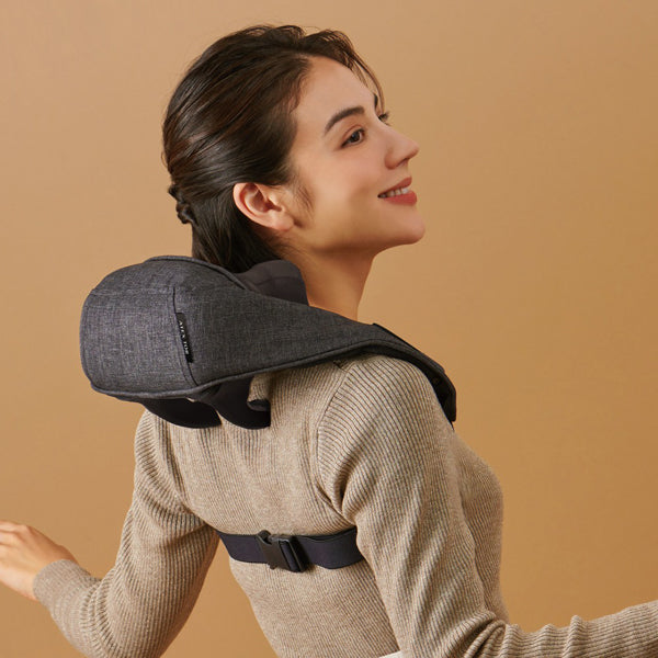 体に装着してハンズフリーで使えるネックマッサージャーが登場。小型で最軽量クラス※だから実現した新しいスタイルです。