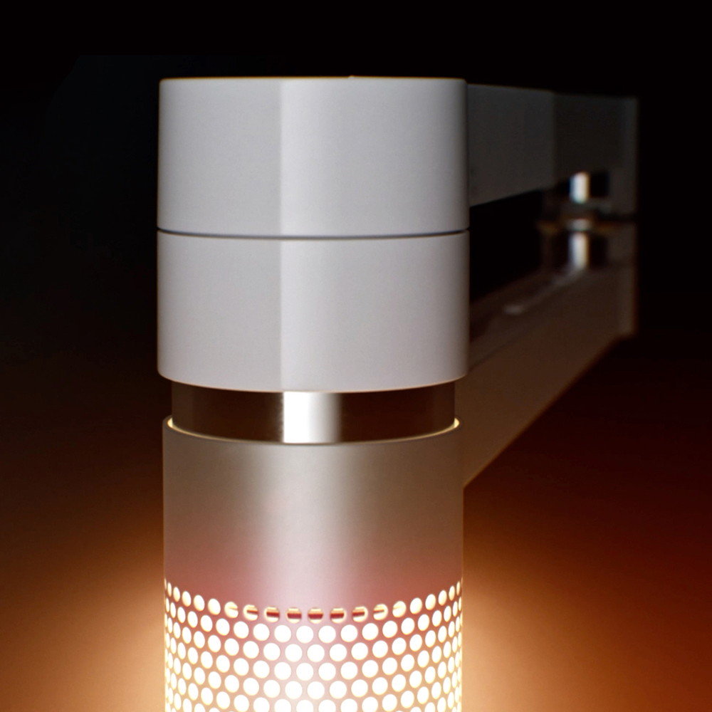 マグネット式のヘッド(LED照明部分)を支柱にドッキングさせることで、アンビエントライトに変わります。オレンジフィルターと支柱の細かな穴を通して光を放ち、リラックスしやすい空間を演出します。