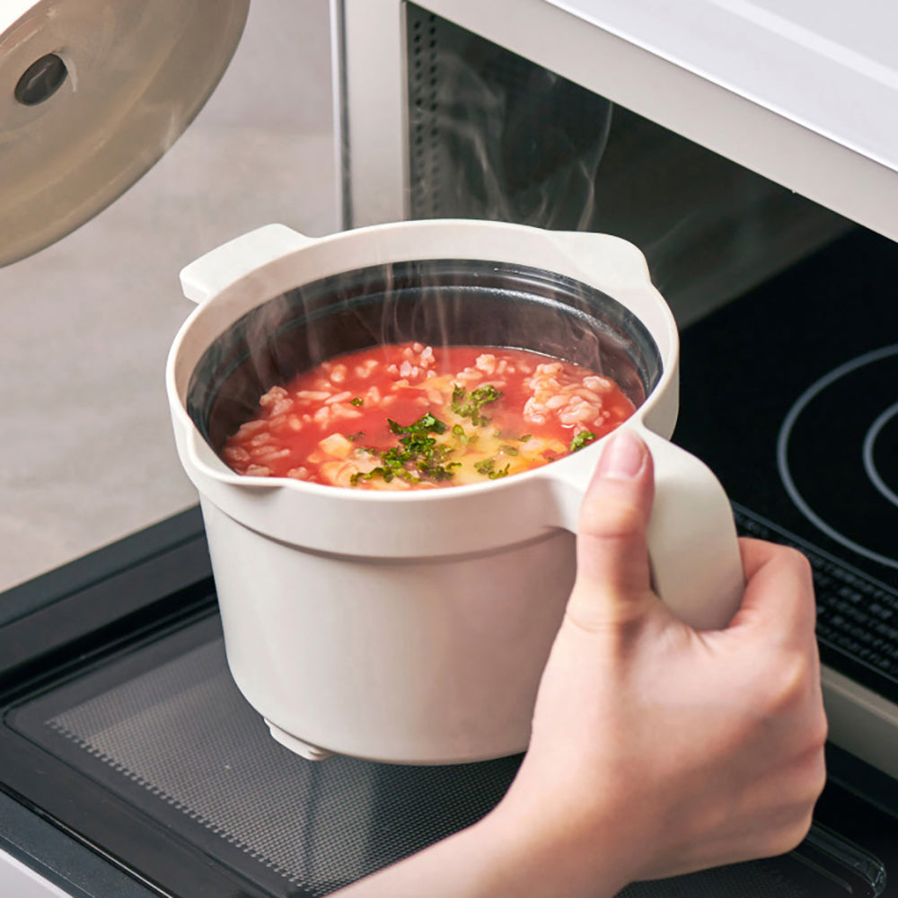 レンジメート マグポットは、食材を入れフタをして電子レンジで加熱するだけの簡単調理。