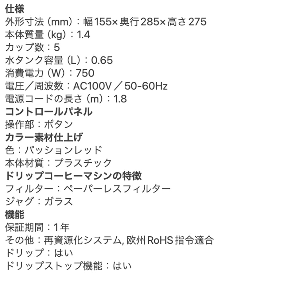 ■コンパクトサイズで置き場所を選ばない最大5杯抽出のドリップコーヒーメーカー。 美味しいコーヒーを淹れる基本に忠実な一台です。