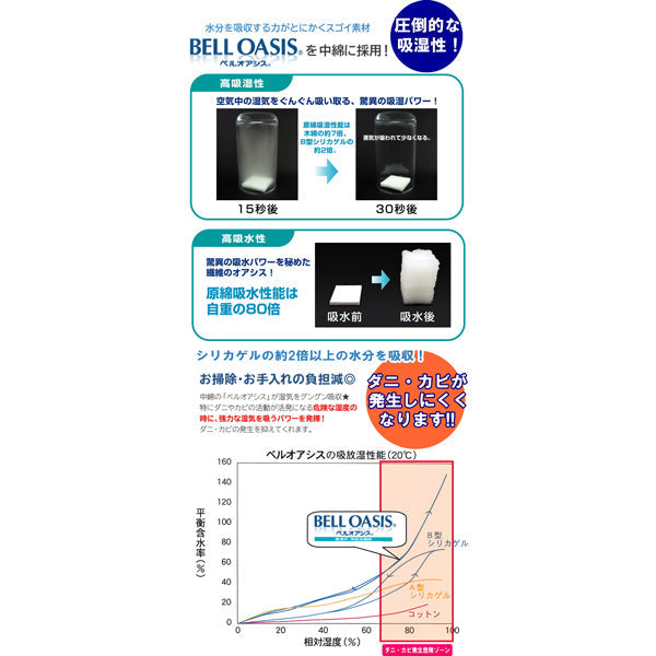 ベルオアシスはシリカゲルの2倍、コットンの7倍も高い吸湿性能をもちます。