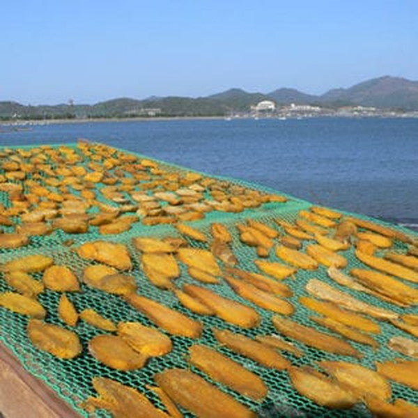 ■さつまいもの中でも人気があり、有名な九州産の安納芋と、比較的新しい品種で、一般的に流通している「甘い」といわれる芋より「はるか」に糖度が高いことからこの名前が付いた「べにはるか」の2大ブランド銘柄のさつまいもを惜しげもなく使用!甘さに定評がある安納芋を、独自の貯蔵方法で40日以上貯蔵・熟成させた甘い芋だけを選別して使用しています。じっくり丁寧に1枚1枚、芋の状態を確認しながらまんべんなく天日にさらし、頃合を見て一番良い状態のときにパック詰めいたします。最近は大量生産の為、収穫して直ぐ、機械乾燥で干し芋にした商品が多い中、今回の商品は新芋を40日以上、熟成させ、その中の甘いものだけを平切りにし、完全手作業で天日干しにするこだわりよう。これは九州地方に古代から伝わる伝統的な製法!砂糖などを一切使用せずに半生状で仕上げた、他ではまずお目にかかることが出来ない安納芋・べにはるかの「半生干しいも」です。砂糖などは一切使用しませんが、この熟成・天日干しという昔ながらの製法で仕上げた商品は、、安納芋・べにはるか自体に本来の自然のままの甘みがあり、甘いんですが、しつこい甘さではない自然で素朴な、どこかノスタルジックになる様なおばあちゃんの味が詰まった甘さ。これまでの干し芋とは違う食感があります。軽く火で炙れば芋独特の風味がお楽しみいただけます。砂糖をまぶし甘くした商品とは異なり、1つ1つ手作業で天日干しし、素材本来の甘みを自然に活かし、半生状で仕上げた他ではなかなか手に出来ない本場、九州の昔からの伝統の味。1口食べるとその美味しさに手が止まらなくなる絶賛の味。是非、この機会にご賞味ください!
