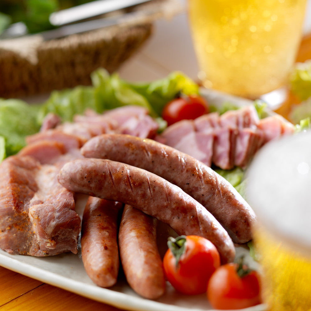 ■約90年前から牧場のスローライフの中で楽しんできたベーコン。4週間に及ぶ「氷温での長期自然漬込」と、2年かけて乾燥した薪を使う「薪・炭火による燻煙」という製法によって作り上げます。ITI(世界味覚審査)では5年連続で最高評価の三ツ星を受賞。ボロニアタイプソーセージは大粒の粗びき肉と多種にわたるスパイスを配合したクラシックな製法のソーセージ。