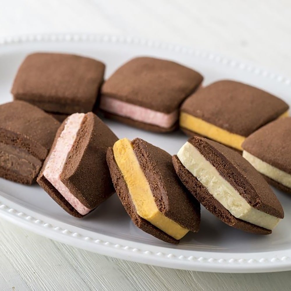 焼き塩を使用し、チョコレートの風味を引き出したさっくり食感のサブレ生地にフリーズドライのフルーツを混ぜ、焼き上げたフルーツショコラをサンドしました。