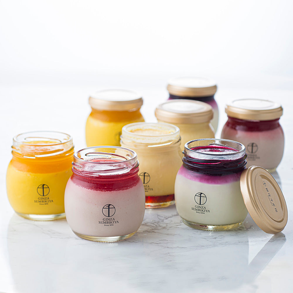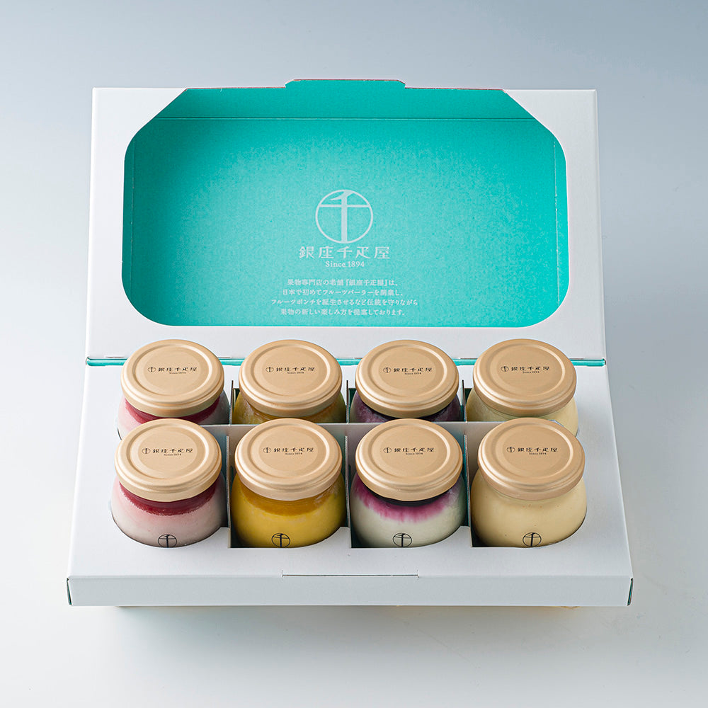 ■商品内容:銀座プリン(プレーン、いちごプリン、マンゴープリン、ベリーチーズ)各95g×各2 (計8個)