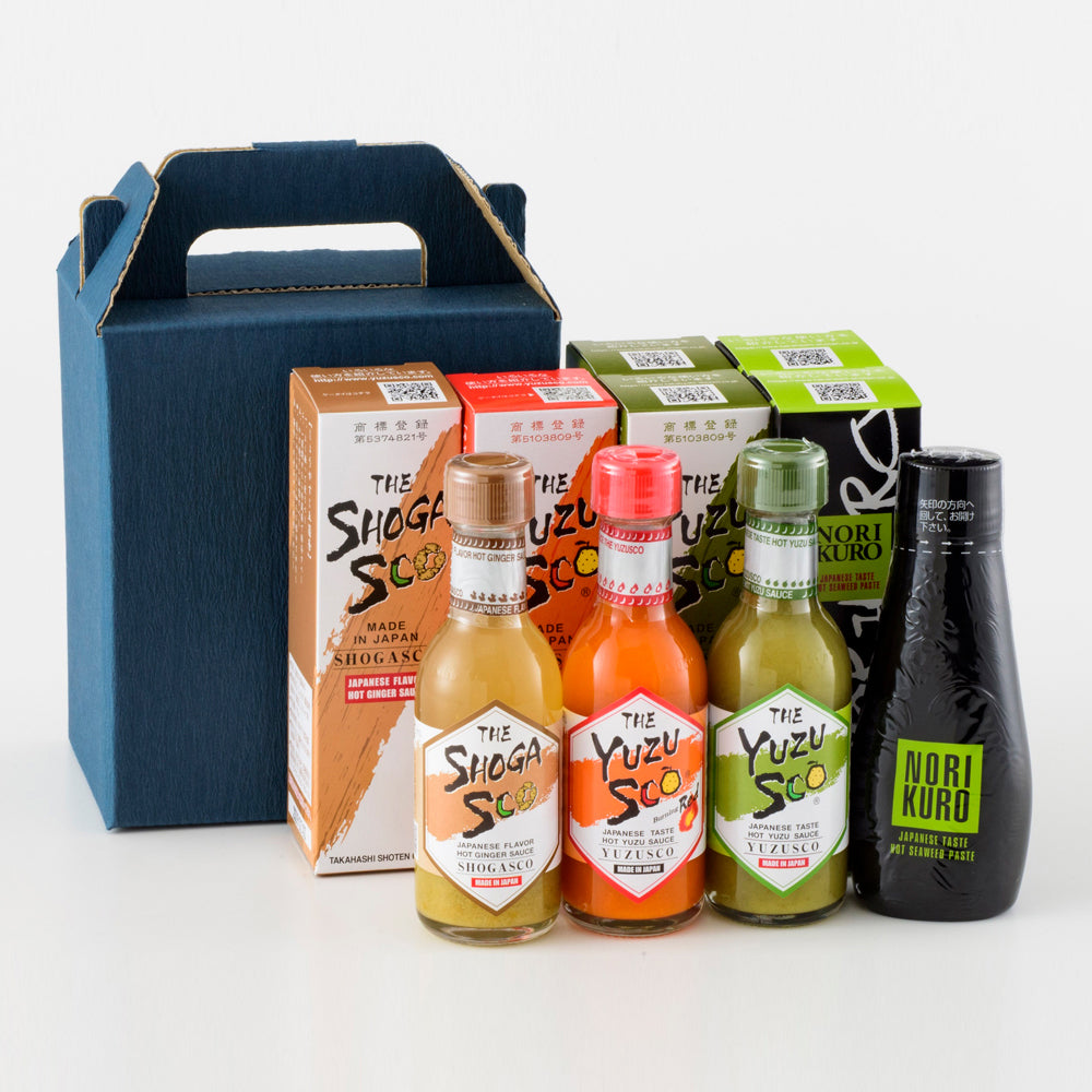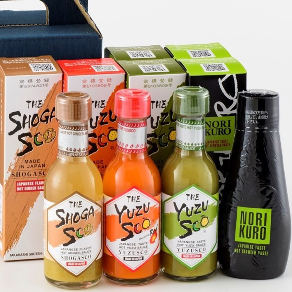 九州名産ゆずこしょうをもっと手軽にそして幅広い料理に合うように厳選したお酢とブレンドした液体ゆずこしょう「ゆずすこ」とそのシリーズ品の詰合せです。「のりクロ」は有明海産の一番海苔・二番海苔のみを使用し、海苔の風味を損なわないように絶妙な割合でゆずこしょうとお酢をブレンドした海苔の佃煮です。