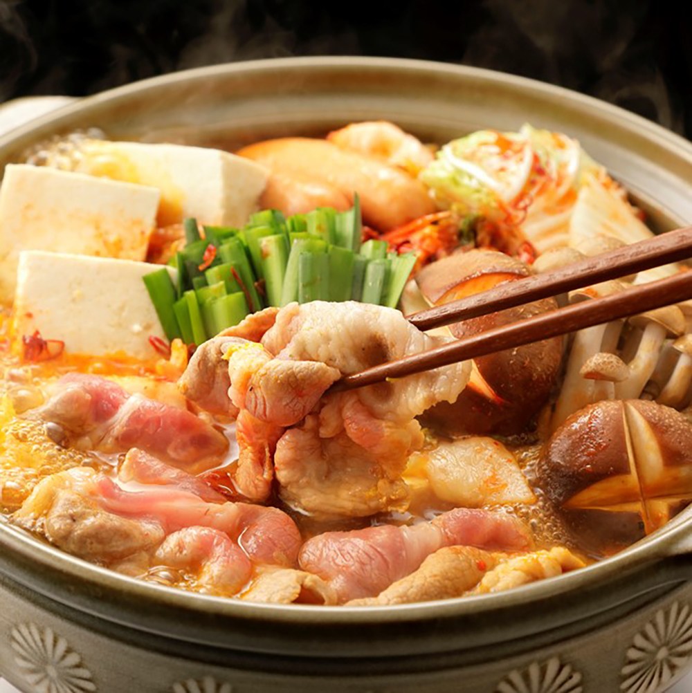 冬に人気のお鍋をピリ辛のチゲ鍋でお楽しみ下さい。三重県産さくらポークは肉の旨味が味わえるバラ肉と上質のロース肉でご用意しました。白菜などお好みの野菜や豆腐などどれとも相性はいい素材です。ラーメンも2袋ついているので、しめのラーメンと満腹感も得られる鍋セットです。