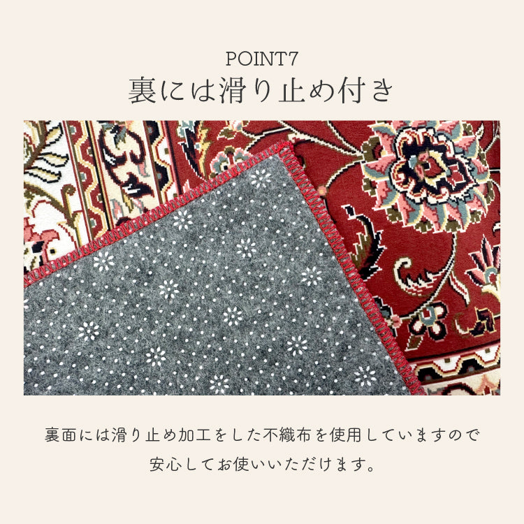 ホットカーペットの上にも敷けて、裏面には滑り止め加工付き不織布を採用しています。