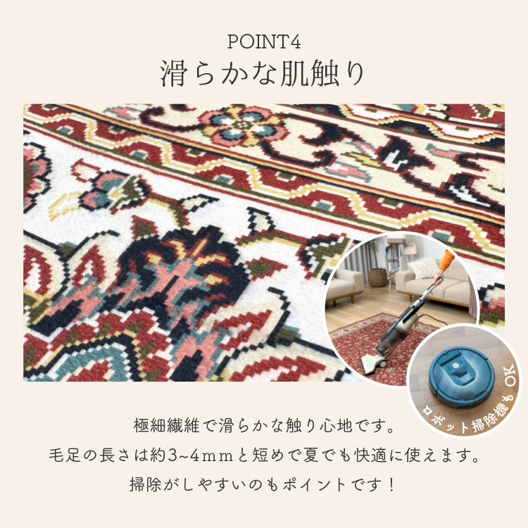 ホットカーペットの上にも敷けて、裏面には滑り止め加工付き不織布を採用しています。