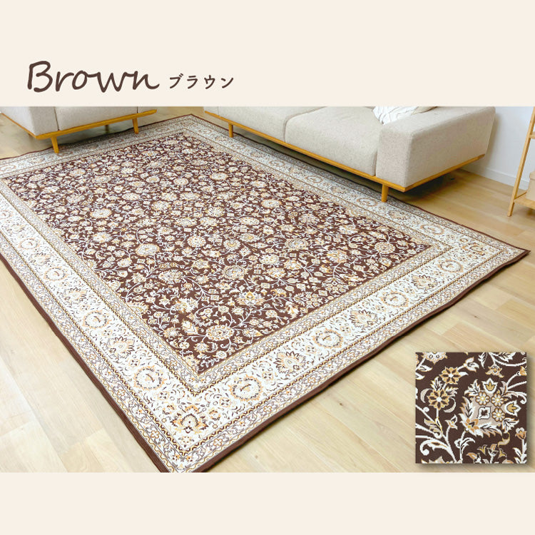 洗えて畳める カーペット 手洗い可能 軽量 ホットカーペット対応 ペルシャ絨毯調 デジタルプリント ブラウン 190×240cm
