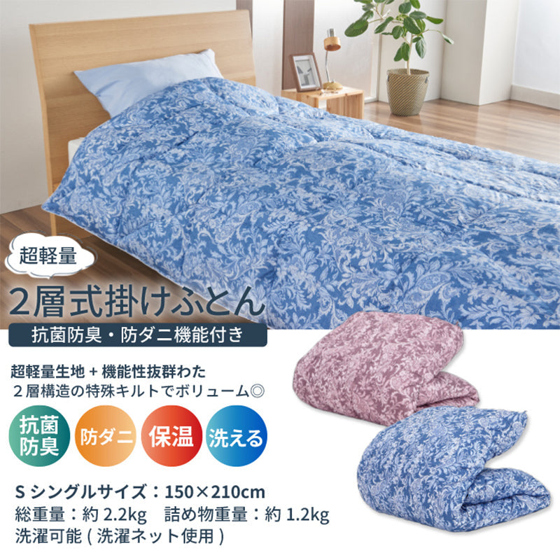 丸八真綿 2層式ウルトラライト保温合繊掛け布団 シングル ブルー