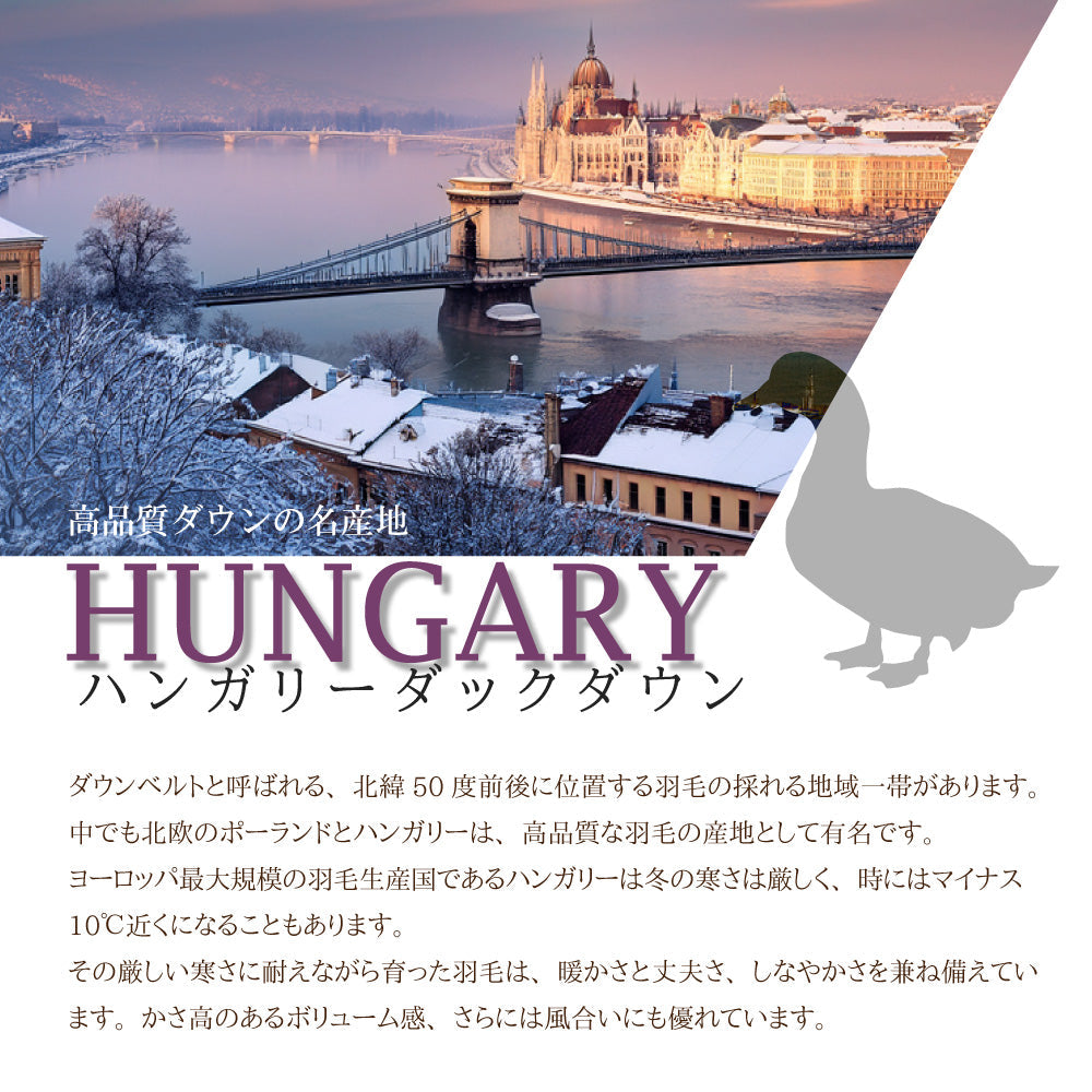 (1)ハンガリー産のホワイトダックダウン85% 大きなダウンボールで吸湿放湿性・保温性に大変優れたダウンを使用しています。
