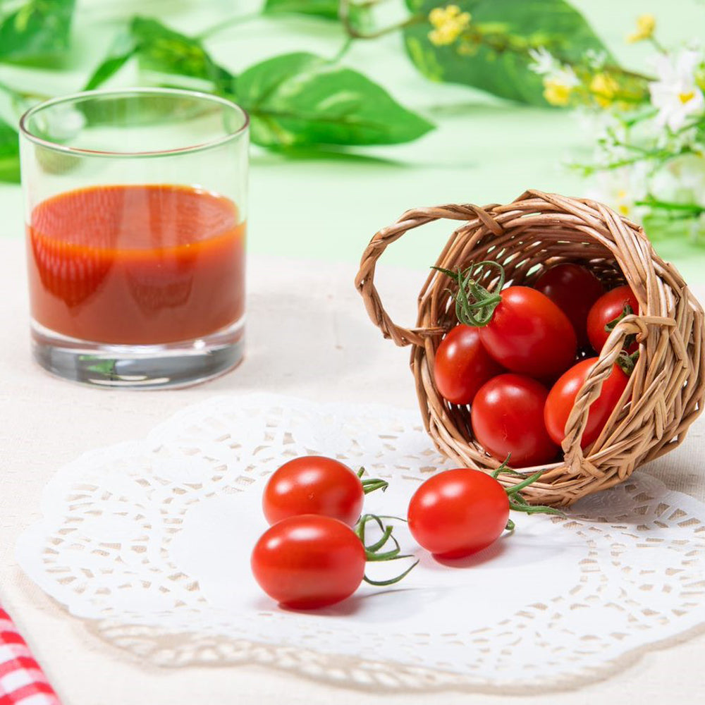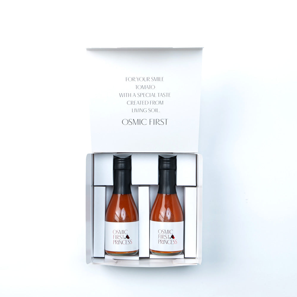 PRINCESSトマトジュースにふさわしいOSMICトマトだけを使い、砂糖・塩などは勿論、水一滴さえも加えずに作ったトマトジュース。