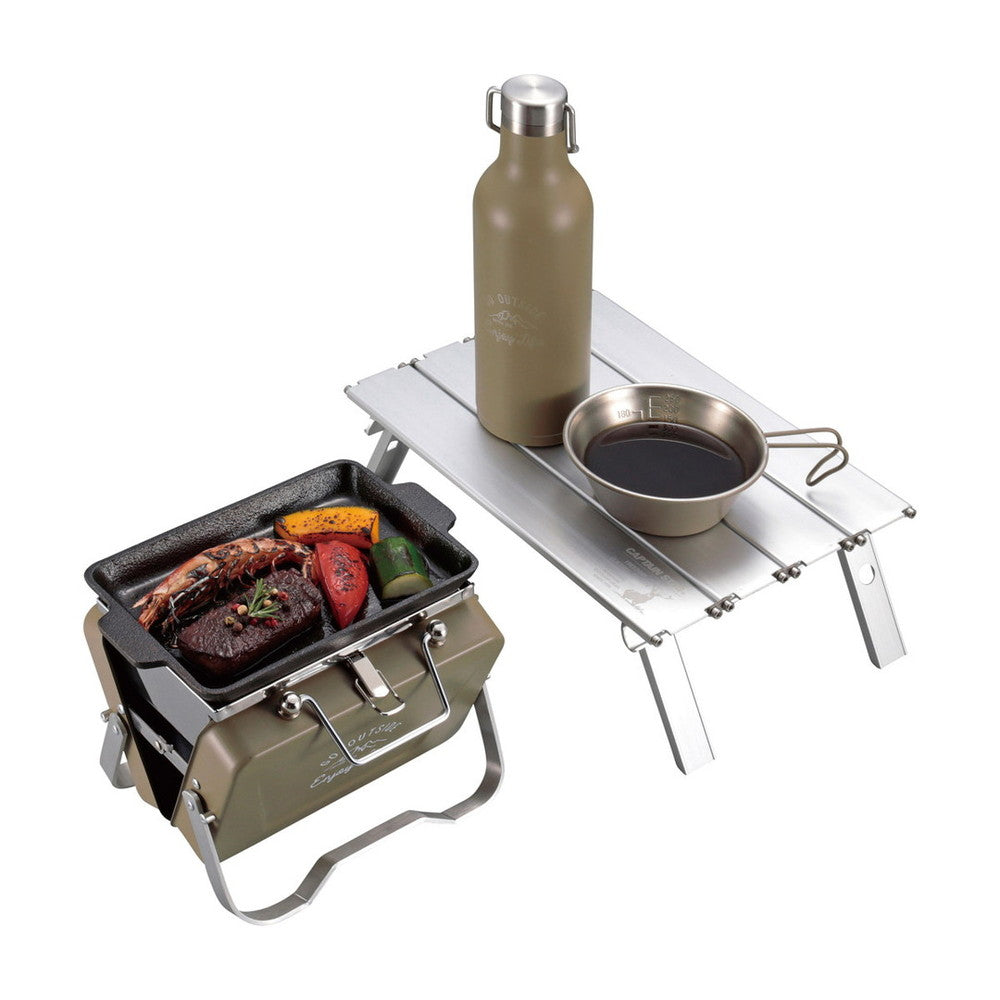 ■ソロキャンプやお花見・行楽に最適なコンパクトサイズのV型卓上グリル。