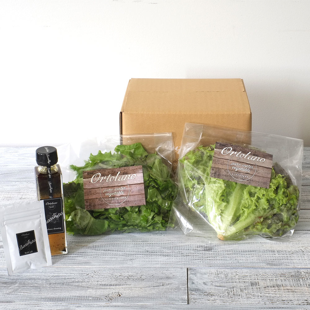 ■大手航空機内食のファーストクラスで採用いただいているオルトラーノのサラダと人気のバジリスタイタリアンドレッシングのセット。バジルソルトのサンプルもお付けしました。栽培期間中農薬不使用で育てた野菜は、洗わずそのままお召し上がりいただけます。お手軽にファーストクラスの味をお楽しみください。