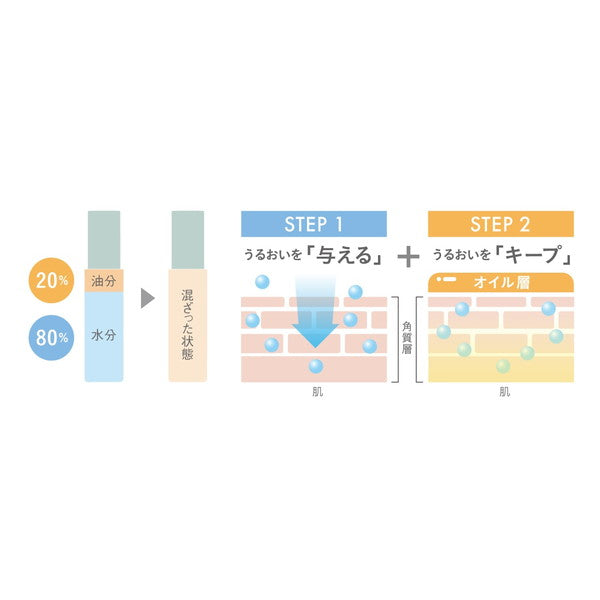 水分量と油分量を共にチャージすることで、うるおいを「与えて」×「キープ」。