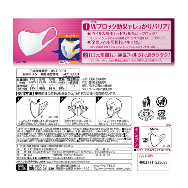 超快適 マスク超立体遮断タイプ 小さめ30枚入(4個)
