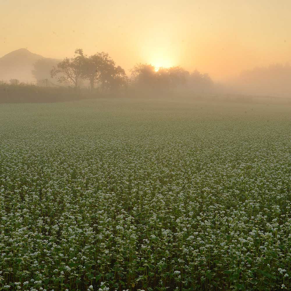 【霧ノ蕎麦茶】京都府福知山・夜久野産の良質なそばの使い、自社焙煎したティーバッグ入りのそば茶で、急須などに熱湯を注ぐだけでお手軽に深煎りの香ばしいそば茶を楽しめます。