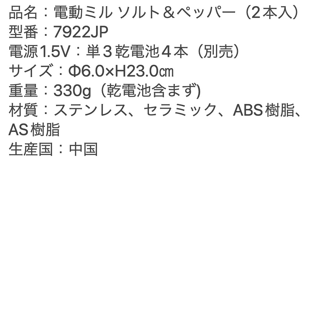 ■商品内容:ラッセルホブス 電動ペッパーミル(2本セット)