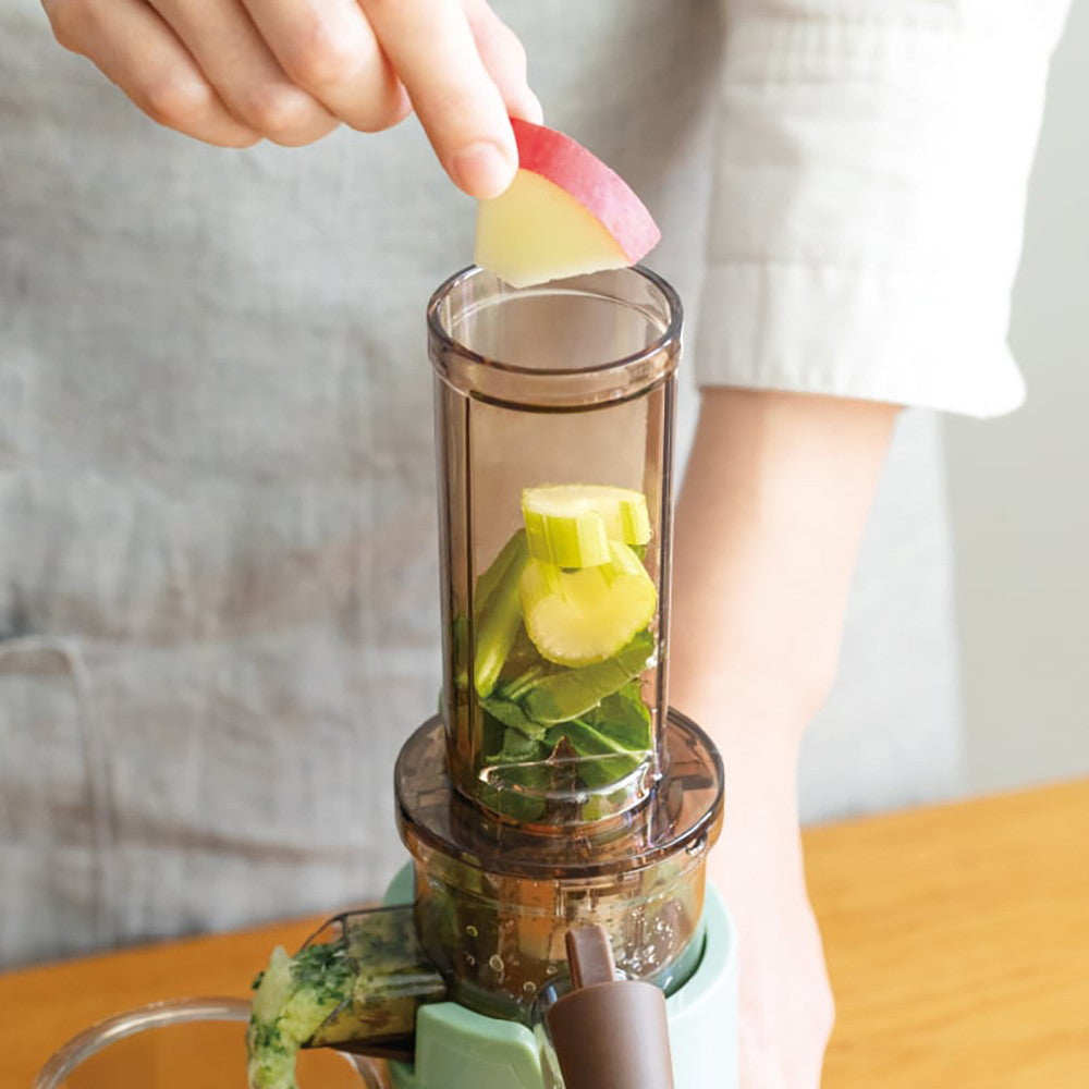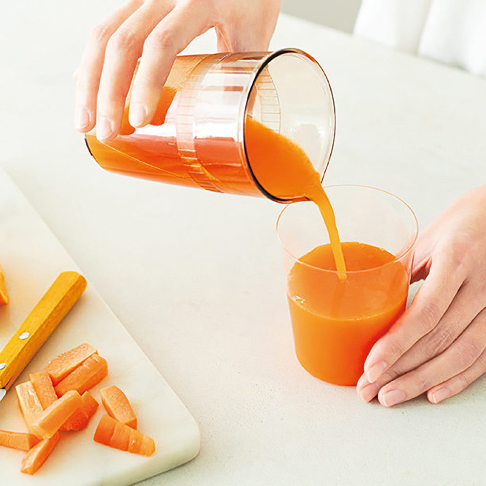 軽量コンパクトで置き場所にも困らない[コールドプレスジューサー ミニ]は、操作も組み立ても簡単でお手入れもラク。
