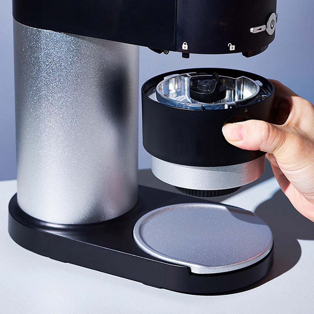 電動グラインダーで大敵なのが、本体内部に残る酸化した粉です。粉が中に残りにくい直下式の構造にすることで、本体内部に粉が残ることを最小限に抑えます。独自のグラインドユニットは、丸ごと取り外せるからお手入れが簡単で、日々のメンテナンスのストレスを軽減してくれます。外せるユニットだから交換が可能で、高頻度・長期間の使用でも、変わらない品質で耐えられる設計です。