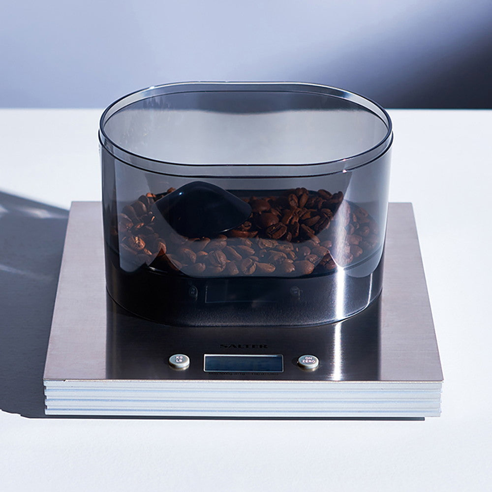 沢山の豆を自動で挽けるグラインダーが欲しくても、スペースは最小限にしたいもの。容量は大き目ながらも、設置しやすいスリムなサイズ感を実現しました。
