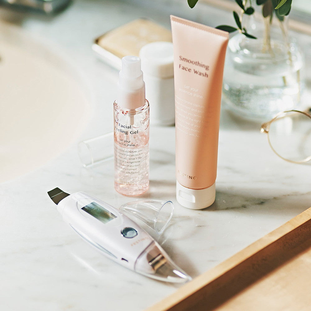 ザラつき、汚れの詰まり、ゆるみなどが気になる肌に。週1〜2回のピーリングと表情筋ストレッチをスキンケア習慣にプラスして、気分までスッキリ。
