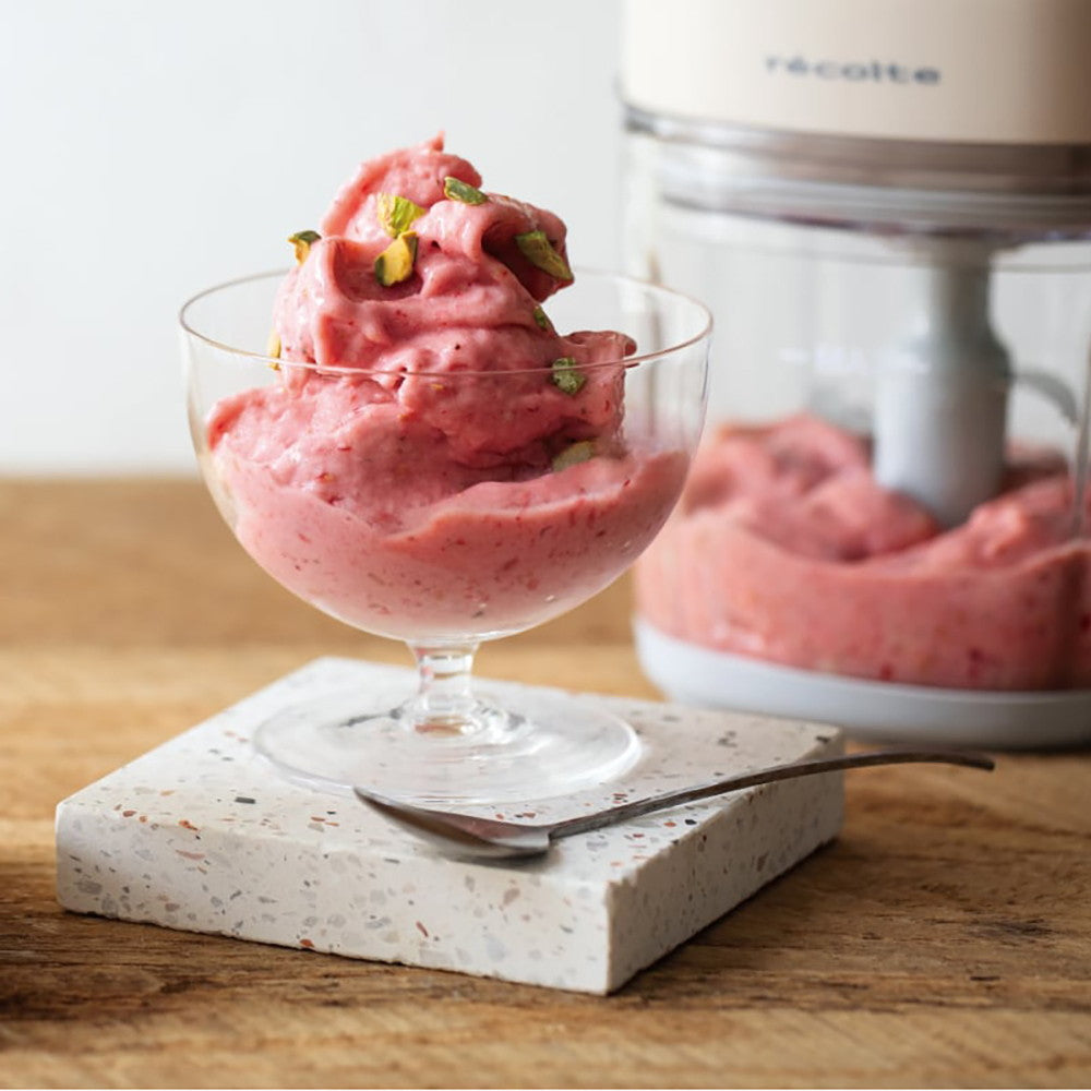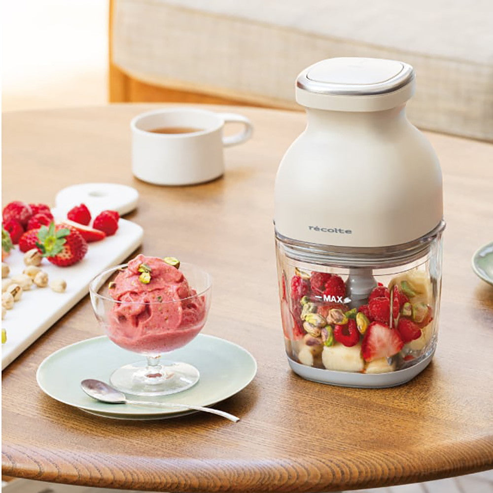毎分2万4000回転するパワフルなモーターと切れ味のよい4枚刃で、市販の氷や冷凍フルーツもあっという間に粉砕。かき氷やクラッシュアイス作りもお手のもの。