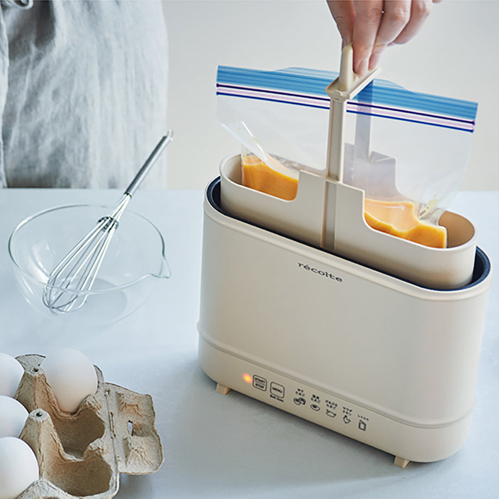 ・保存袋を使った調理メニュー:[エッグ&ボイルクッカー]独自の【ぷるぷるたまご】メニューを搭載。低温調理で作るプリンやだし巻きたまごなど、ぷるぷる新食感のたまご料理ができます。