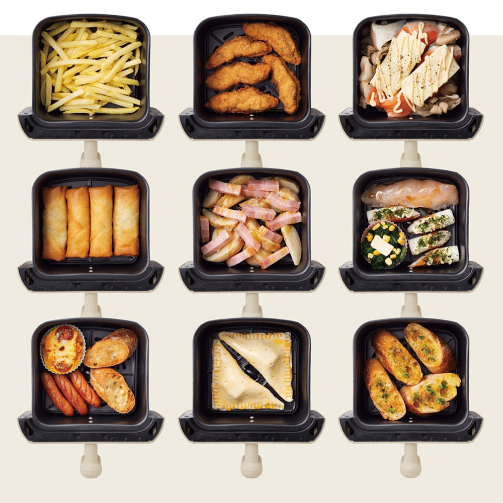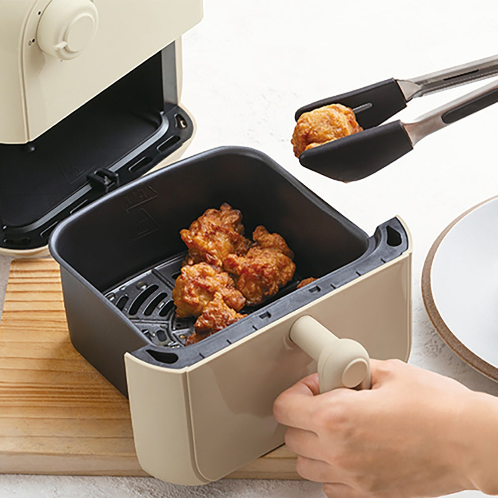 高温の熱風で“油で揚げないヘルシーな揚げ物”が作れる[エアーオーブン]。狭いキッチンや食卓にも置きやすいコンパクトサイズ。揚げ物はもちろん、ローストやグリル、ベイク、温め直しと、これ1台で様々な料理を作ることができます。本体カラーはレッド・クリームホワイトの2色。