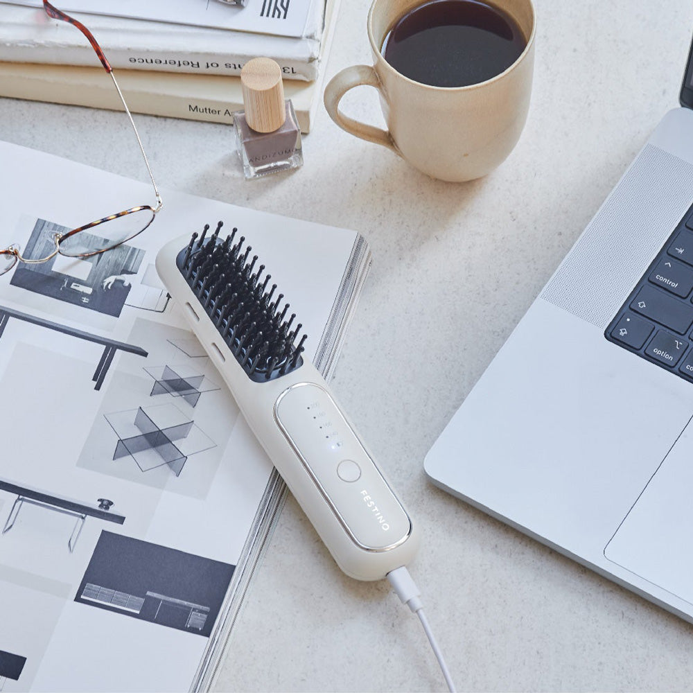 ■商品内容:フェスティノ 充電式 スタイリング ヒーターブラシ サンドベージュ